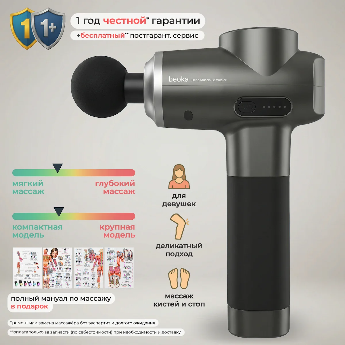 Настоящий прорыв на рынке массажных пистолетов! Линейка премиум массажёров Beoka включает в себя пять моделей: народный Beoka S class, компактные Beoka Mini и Beoka Transformer. Beoka S6 - это Lite версия профессионального Beoka Pro 6.
