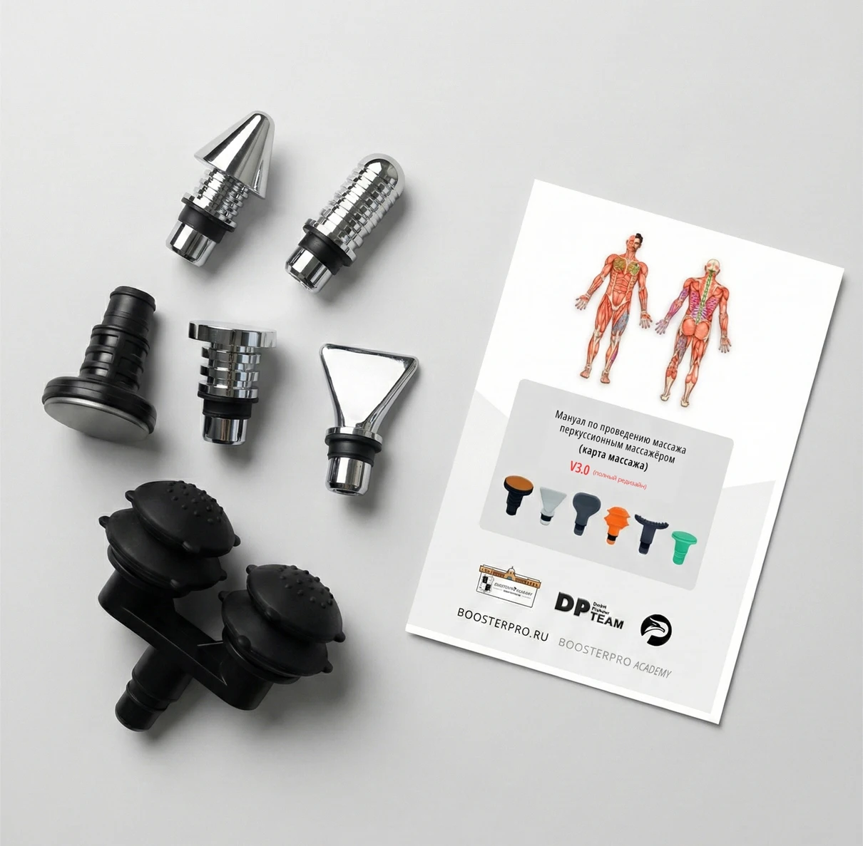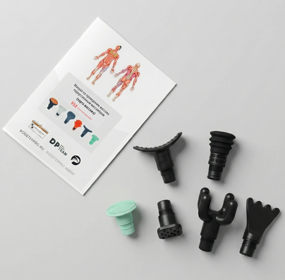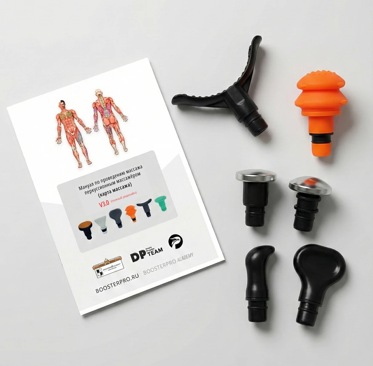 Профессиональный перкуссионный массажёр Booster Mini X комплектуется полным комплектом инструкций от нашего эксперта, полностью на русском языке. Этот комплект включает в себя: